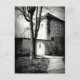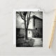 Cartão postal com fotografia a preto e branco, mostrando uma antiga casa coberta de vinha e jardim em Montmarte, Paris. Uma árvore de inverno sem folhas está em primeiro plano, e um caminho leva a um portão arquitetado em uma parede.