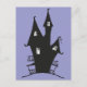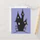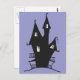 Casa assombrada e assustada numa silhueta preta num fundo roxo.