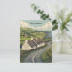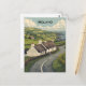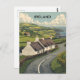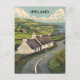 Um cartão postal antigo da Irlanda mostra campos tranquilos, casas encantadoras e um mar calmo, tudo renderizado em cores quentes e nostálgicas.