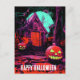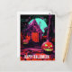 Cartão Postal Casa do Dia das Bruxas Rosa Laranja Roxo Assombrad