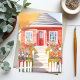 Cartão Postal Casa Vermelha | Bonito pintura de aquarela