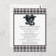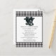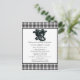 Um convite para chás de casamento casais num tema ocidental. Fundo é uma xadrez preta e branca sob um quadrado de branco com texto preto. Matte paper foi escolhido.