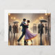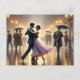 Um casal dançando na chuva que ignora as pessoas que passam. Cena romântica.