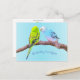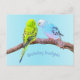 Este cartão postal apresenta uma pintura digital de um casal de periquitos fofos em um galho. Belo cartão postal para todos os amantes de pássaros! Criado por Marions Artwork.