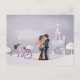 Cartão Postal Casal em Snowy Paris com Torre Eiffel