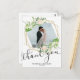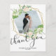 Cartão Postal Casamento Agradecimento Verde Dourado Folha Geomét