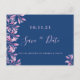Cartão Postal Casamento botânico cor-de-rosa azul Salve a data