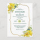 Este cartão postal de casamento floral bonito e amarelo-primavera é perfeito para um Casamento de primavera ou um Casamento de Verão. Este design único e elegante apresenta flores brilhantes em amarelo com bagas azuis e acentuações botânicas verdes. Um quadro de ouro envolve elegantemente o cartão postal de convite amarelo suave. Tão doce e elegante para seu casamento especial com sua família e amigos.
