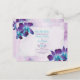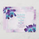 Casamento de flores de orquídea de Dendrobium azul-turquesa e azul-roxa salve-se a data com a cor d'água roxa lilac e turquesa e a cor d'água rasgada e a cor de borda rasgada, em papel de fundo para o casamento, exceto a data. Este tipo de orquídea é violeta roxa e azul-lacre ou azul-turquesa e é chamada de orquídea Dendrobium azul. Há também outros tons de púrpura e azul ou turquesa nesta flor. Esta flor de orquídea em particular é muito barato e é muitas vezes usada em temas de casamento de pavão. O fundo desta salva, a data, é um púrpura lilás pálido e uma lavagem de aquarela turquesa que adiciona uma bela cor ao design de convite. As bordas simuladas de papel rasgado do fundo por trás do casamento exclusivo salvam o layout de texto de data adiciona ao estilo de aquarela. Substitua a foto no verso por sua própria foto de noivado. Este é um casamento de excelente, salvo a escolha da data se sua flor for uma orquídea Dendrobium azul ou se você estiver pensando em ter um tema de cor de pavão ou um casamento temático roxo e turquesa ou roxo e teal. Este casamento de Dendrobium azul, salvar a data é uma escolha excelente para um casamento de primavera ou um casamento de verão. Também pode funcionar para um casamento no inverno para o qual você quer usar cores brilhantes e alegres. Este romântico casamento entre orquídeas que salva a design da data lembra um belo jardim com sombras pastéis macios e cores vibrantes e ousadas de tom de joia.