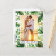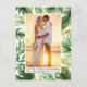 Elegante Cartão de Agradecimento de Fotografia de Casamento de Noiva e Noivo com Folhas de Palmeira de Vegetação Tropical em Aquarela