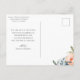 Caligrafia elegante de "Agradecimento" em branco, cartão postal de agradecimento de foto de casamento. Verso do cartão apresenta arranjo floral em aquarela em azul ardósia, pêssego e verde.