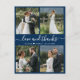 Elegante, marinho minimalista e mão branca escreveram 4 imagens de colagem personalizadas obrigado de casamento que você fez. modelo de cartões de agradecimentos de casamento com quatro (4) fotos na frente e uma (1) foto no verso. Com o texto "Amor e obrigados" em um robusto guiado escrito com letras tipográficas, o script de fonte swash tail em cor branca sobre fundo azul marinho escuro. Pequena forma cardíaca entre os nomes. Personalize seu nome e obrigado da mensagem. Se preferir escrever manualmente a sua nota, basta eliminar o texto de amostra para obter mais espaço. Se você precisar de ajuda ou item correspondente, entre em contato comigo!