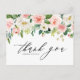 Envie seu obrigado a convidados e clientes com este obrigado personalizável que você faz o cartão-postal. Apresenta a terra de cor d'água floral de rosas e peônias cor-de-rosa e branca com acentos verdes. Personalize este obrigado floral que você faz no cartão-postal adicionando seus próprios detalhes de evento. Este obrigado floral cor-de-rosa que o seu cartão postal é perfeito para casamentos de inverno e primavera, chás de panela, chás de fraldas e outros eventos.