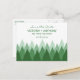Estes cartões postais são perfeitos para qualquer casal planejando uma celebração de casamento russa na floresta. O design apresenta uma faixa de floresta ombre em tons de verde sobre fundo branco com uma redação editável coordenada por cor. A design rusticidade pode ser personalizada para se adequar ao seu evento especial e será o anúncio perfeito para qualquer partido temático do país, incluindo chás de panela, noivados, chás de casamento, festas de aniversário e muito, muito mais.