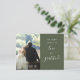 Apresentando sua foto especial de casamento este elegante obrigado verde-oliva que o seu cartão postal pode ser personalizado com sua mensagem de obrigado. Projetado por Thisnotme©