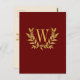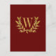 Cartão Postal Casamento de Monograma de Ouro Burgundy Elegante