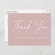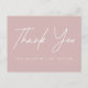 Simples obrigado de casamento que você postcard com "Obrigado" exibido em um roteiro branco manuscrito com fundo rosa empoeirado. Personalize a frente do obrigado moderno que você faz ao fazer o cartão-postal, adicionando seu nome. Adicione seu endereço de retorno e uma mensagem personalizada no verso.