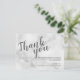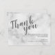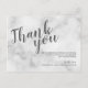 Clássico Casamento de Mármore Branco Elegante Obrigado Cartaz com título em fonte moderna de roteiro de cinza com detalhes em cinza sans serif moderna em fundo de mármore branco.
