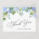 Cartão Postal Casamento Elegante Blue Hydrangea Greenery Obrigad