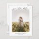 Casamento clássico salve o cartão-postal com um simples e mínimo design preto e branco com uma combinação de fontes serif tradicionais e um roteiro elegante juntamente com sua data em um formato grande para um toque moderno junto com sua foto favorita. O verso tem uma segunda foto para um total de duas fotos. Esta elegante salvação do cartão postal é excelente para um casamento formal.
