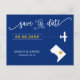 Você escolheu um lugar especial para o seu casamento. Agora é hora de celebrá-lo com esse guardar o cartão postal, com um mapa da silhueta e um pequeno avião a caminho do seu destino. Para mover o coração para o lugar do seu casamento, clique em personalizar e, em seguida, "personalizar ainda mais".