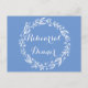 Adicione diversão ao seu janto de ensaio de casamento com estes encantadores convites para cartão-postal de janto de coroa floral azul e flor branca. Este belo e charmoso convite para jantas de ensaio de cor azul e branca é perfeito para o seu primavera, verão e casamento no campo. ROLE PARA BAIXO PARA EXIBIR OS PRODUTOS CORRESPONDENTES DE QUE VOCÊ PODE BENEFICIAR.