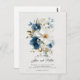 Cartão Postal Casamento Floral Azul e Branco