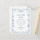 Cartão Postal Casamento Floral Azul Vitoriano Salvar a Data