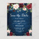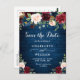 Casamento Floral Blush Azul Burgundy Salve o Cartão-Postal de Data.