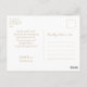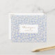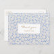 Chic e na moda com elementos de cor do ouro quente. Este obrigado de casamento que você faz com o cartão-postal mostra um casal na frente e um obrigado que você envia no fundo com um adorável padrão floral azul e branco. Este cartão postal faz parte de uma suíte de casamento que inclui outros itens, como convites, cartões RSVP e muito mais.