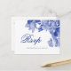 Cartão Postal Casamento Floral Clássico de Chinoiserie Azul e Br