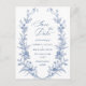 Cartão Postal Elegante de Casamento Floral de Jardim Francês Azul Vintage para Salvar a Data.