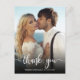 Moderno Elegante Escrito Foto de Casamento de Script Obrigado postal. Obrigado de casamento do Na moda moderno seu modelo de cartão postal com uma foto vertical do cheio na frente com o texto sobreposto "Obrigado" em uma fonte de script de tipografia escrita à mão, em branco, na foto. Personalize o nome personalizado e a mensagem do obrigado. Se preferir escrever manualmente a sua nota, basta eliminar o texto de amostra para obter mais espaço. Se você precisar de ajuda ou item correspondente, entre em contato comigo!