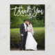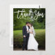 Um na moda e um obrigado fotográfico caprichoso que você faz com um cartão postal com caligrafia moderna. Isso será perfeito para casamentos, graduações e eventos semelhantes.