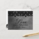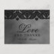 Compartilhe suas Obrigados especiais com este Ornamentado Gótico escuro e lindo Casamento Monocromático Lace Gótico Medieval Obrigado design com uma adorável borda decorativa sobre um fundo de cinza. Adicione sua mensagem especial e personalize este design para atender às suas necessidades neste modelo fácil de editar.