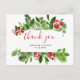 Cartão Postal Casamento Moderno de Natal Holly Red Berry Obrigad