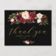 Um cartão postal adorável para enviar mensagens de obrigado aos seus convidados de casamento. Apresenta flores vermelhas e borrifadas e borbulhantes de aquarelas. Você pode editar o texto e as cores.