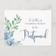 Anuncie o adiamento do seu casamento com essas flores azuis e design verde. Escrita manual elegante. A parte traseira oferece uma área de mensagem editável para personalizar conforme desejado.