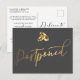 Simples, formal e elegante, convite de casamento adiado é perfeito para deixar seus convidados sobre o adiamento do casamento. Simplesmente personalize o cartão postal com o texto desejado usando os campos fornecidos.