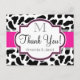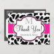 Elegante Obrigado pelo tema da fazenda de uma garota de campo fofo, vaquinha, preto, branco, e rosa quente, vaca, fundo de impressão animal cowhide. Excelente para Casamento, festa de noivado, chá casal e chá de panela, obrigado. Personalizado com o nome e monograma da noiva e noiva.
