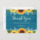 Cartão Postal Casamento Rustic Teal Wood Sunflower Obrigado