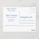 Este design rustico apresenta luzes de cordas de ouro e rendas junto com girassóis e lavandas contra um fundo de madeira azul marinho. O texto personalizável aparece em dourado pálido na frente na escrita popular e na tipografia serif. O texto no verso é marinho azul para corresponder à madeira na frente. Você pode personalizar este cartão postal para salvar a data do seu próprio casamento mudando o texto na modelo.