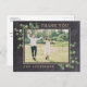 Envie cartões de agradecimento aos seus amigos e familiares do seu casamento com esses cartões de agradecimento fotográficos modernos com madeira rústica e eucalipto. Personalize esses cartões de agradecimento de casamento com sua foto de casamento favorita, mensagem pessoal e nomes. Esses cartões exclusivos de agradecimento de casamento com folhagens farão uma impressão duradoura nos seus convidados, familiares e amigos!! COPYRIGHT © 2020 Judy Burrows, Black Dog Art - Todos os Direitos Reservados. Cartão Postal de Agradecimento de Casamento com Foto e Folhagens de Eucalipto Rústico