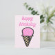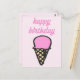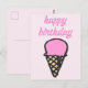 NewParkLane - Cartão postal, com uma casquinha de sorvete fofa e uma citação 'Feliz Aniversário' em uma tipografia de script rosa quente divertida, contra um fundo rosa suave.