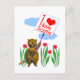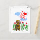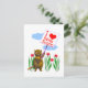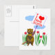Cartão postal com o meu design de um personagem de castor canadense segurando um sinal que diz "Eu amo a Nova Escócia" com um formato de coração.
