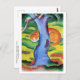 Um cartão-postal de belas artes com a pintura, Children's Picture - também conhecido como Cat BeBack a Tree (1912) pelo expressionista alemão Franz Marc (1880-1916). Um gato de cor gengibre dormindo atrás de uma árvore azul na grama. Marc usou cores primárias em suas pinturas expressivas. Ele também era membro do Blue Rider Group of Artists.