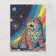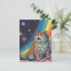 Um gato adorável está miando ao se encontrar no exterior com um arco-íris atrás dele