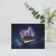Cartão Postal Cat no sintetizador no espaço