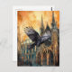 Cartão Postal Catedral Gótica Medieval e Raven Voadora