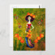 Cartão Postal Catrina W/Chapéu, Flores Laranja E Pias Douradas A